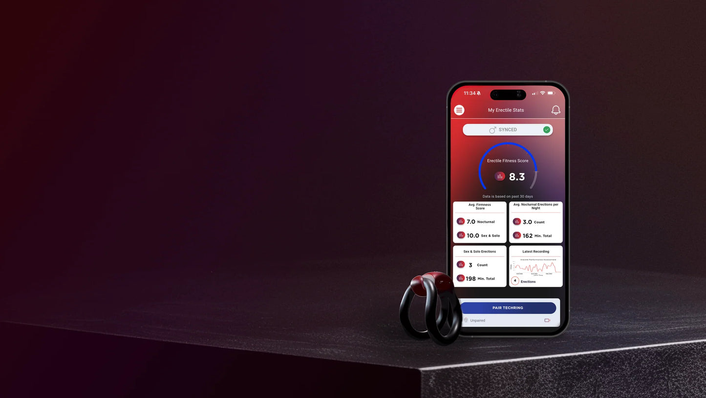 Erectile activity isn’t just about performance it provides key insights into vascular health, nocturnal blood flow, muscle performance, and overall wellness. The Tech Ring gives you objective data you can act on and compare against men your age.